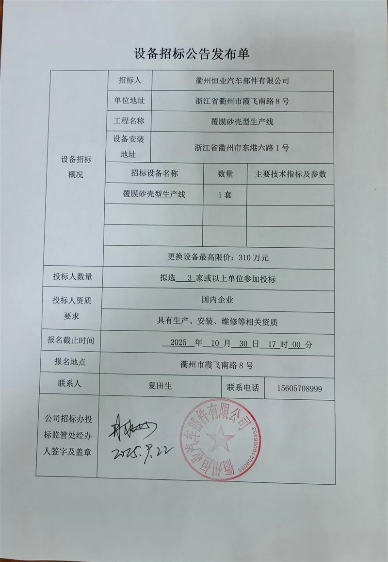 衢州恒业汽车部件有限公司